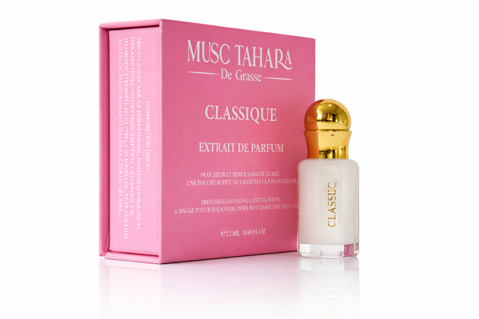Fabriqué à Grasse, ce musc original est exempt de dilution à l’eau ou à l’alcool, garantissant une fraîcheur inégalée à chaque goutte.